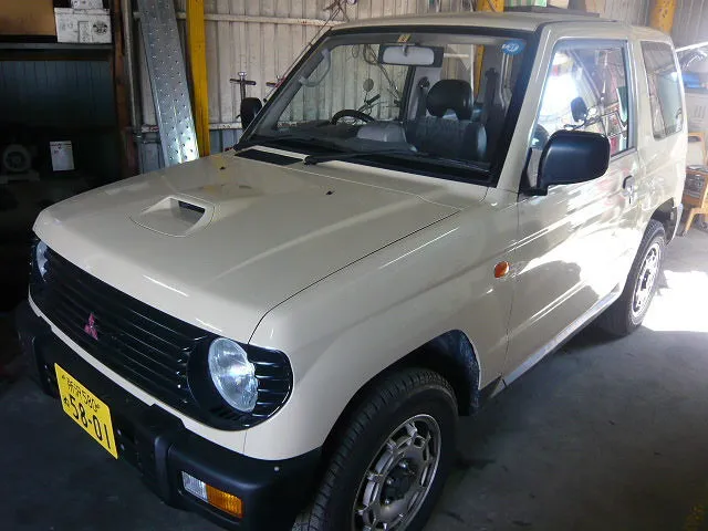 平成7年式、H56Aパジェロミニ~オールペン中です。緑・シルバーの2トーンからウラルベージュ(ジープ最終型専用色)・黒の2トーンへ^^