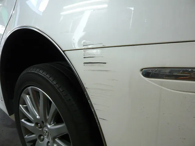 バンパーを外します(このくらいの傷でもバンパーを外して作業しないと仕上がりがうまくいきません^^;;)