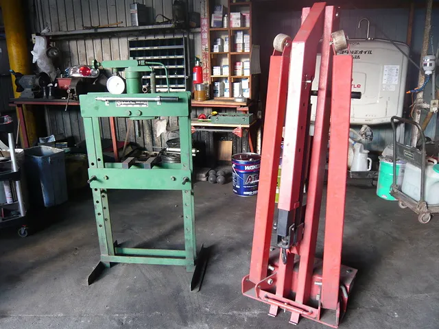 細かい作業(各ベアリング交換等)や重作業(クラッチOH、エンジン換装等)に対応するための設備です。