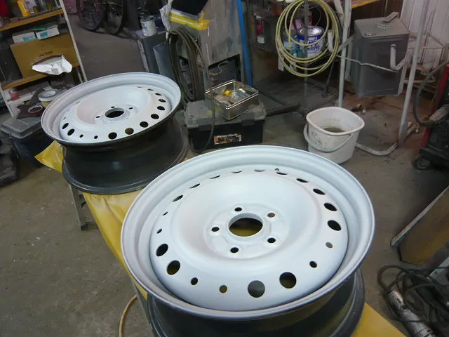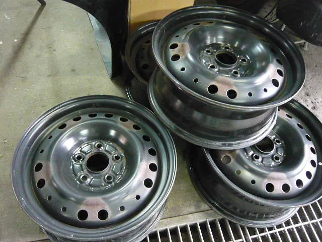 ホイールカバーから覗いている錆ついた鉄ホイール・・ 今回はこのホイールの塗装依頼です^^