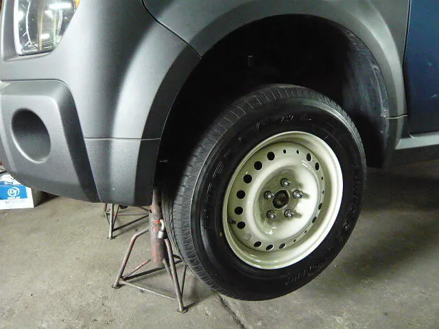 タイヤのワイヤーが出てしまったエブリィワゴンです^^;; もちろん速攻で新品に交換させていただきました^^
