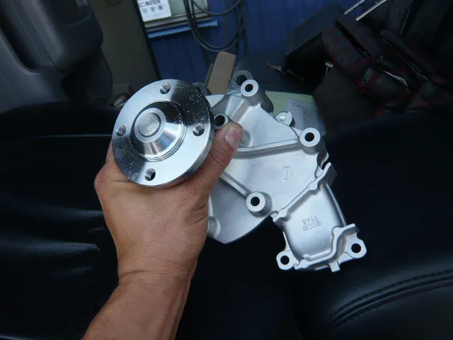 エンジンから異音がする!ということで入庫のハイエースです。ベルトを外し、一つ一つ点検した結果、ウォーターポンプからの異音でした^^;30万キロ突破の車両ですので仕方ないですね;; リビルト品への交換での対応となりました^^