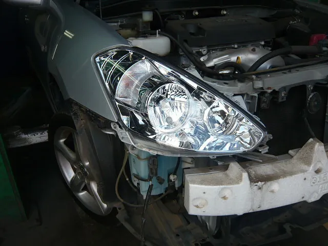 上の写真との違いは一目瞭然です! 蘇りましたね^^ ちなみにヘッドライトのお値段・・46000円/片側になります(汗) この車両はHID車ですので、HIDユニットの入れ替えや、バンパー脱着なども必要です。工賃込みで12万円程になりました^^;;;