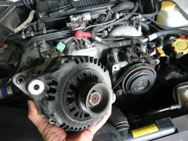 チェックランプ点灯でのご入庫レガシーです。チェックしたところオルタネータ出力不足ということでオルタネータ(ダイナモ)交換となりました。リビルト使用ですが、今回は35000円(ベルト交換含む)となりました^^