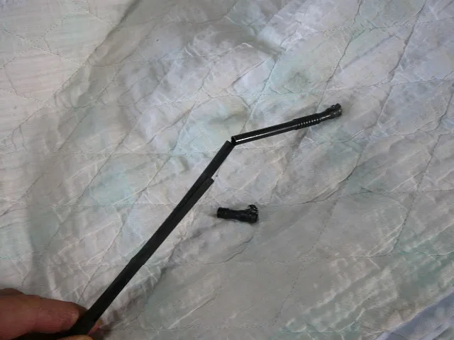 平成18年式BMW740iです。写真の物。。何でしょうか? これフロントワイパーアームに内蔵されているパイプ(水が通るライン)なのです^^; 経年劣化でしょうか?折れてしまっています(泣)勿論部品として無いのでワイパーアームASSYでの支給になってしまいます・・・約20000円(1本)!!! 厳しいです^^;;