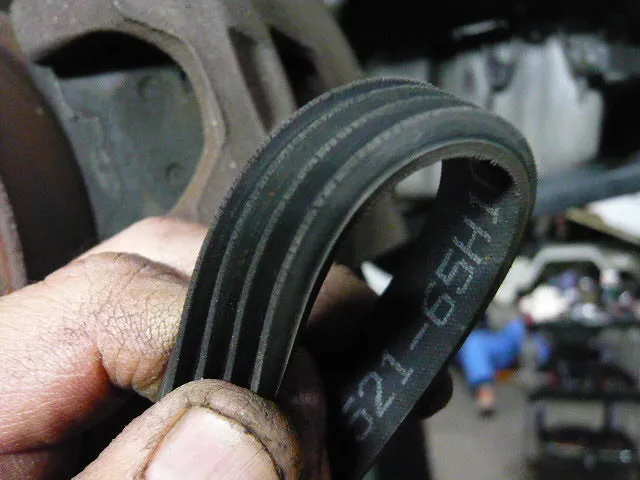 エンジンかけると音がする!! ということで入庫のパレットです。現象確認し、記録簿のチュック!走行5万キロで一度もベルト交換歴がありませんでした^^;; 外して確認したところ、全体的に堅くなっていて、ヒビも入っていました(泣) ベルトを交換し、修理完了です!税込み10000円程の作業になりました^^