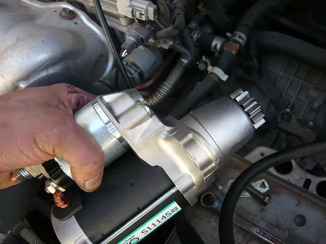 60系ノアです。エンジン始動時に異音がするとの事で・・・確かにします!エンジン始動後にギアが回される音が(汗) そう!セルモーターです^^; ギアが飛び込んだままになってしまうようです!エンジン始動不可になってしまうので交換となりました~^^ 今回はリビルト品を使い25000円ほどかかりました^^
