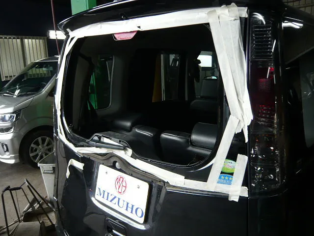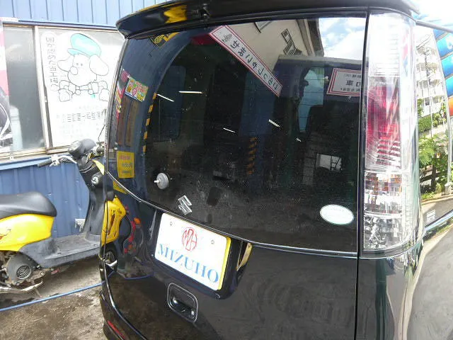 バック時に誤って、電柱にぶつけてしまったパレットです^^;; リアゲート、ガラス・・交換になりました(泣)
