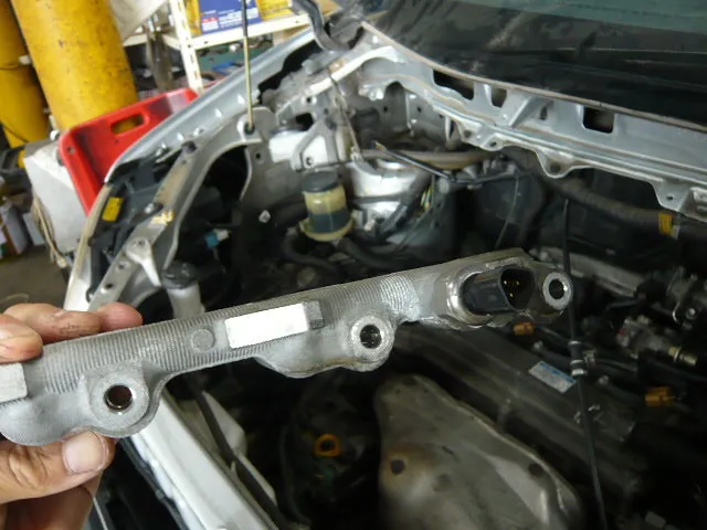 エンジンが掛からないとの事で入庫の14年式ノアです!色々原因は考えられますが(火花、圧縮、燃料・・・)今回は最も多い「燃料系」でした^^;; トヨタ直噴エンジンの泣き所「フューエルプレッシャーセンサー」の不具合です(泣) 指先のさらに奥に鎮座しているセンサーですが、外すのがかなり大変です;;↓↓↓