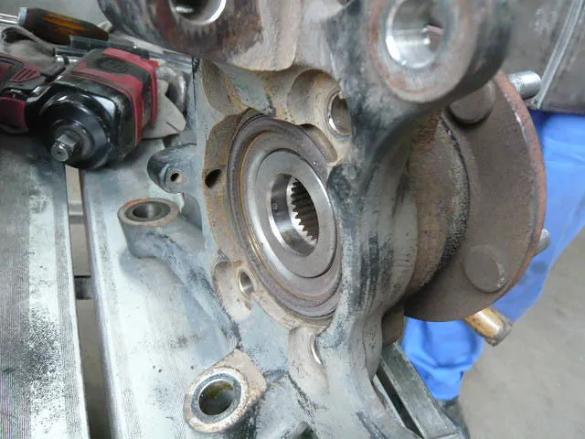 前から変な音がする!(ゴー!!)との事で入庫のE51エルグランドです。問診の段階で何となく原因は掴みましたが、やはりココでした!フロントハブベアリング!!です^^;; この症状多いですね!弱いのかもしれませんね(右側) 今回は右側のみですが本当は両方交換したいところですね^^;; エルグランド乗りの方!ご注意を!! 部品代工賃で30000~35000円程となりますよ~