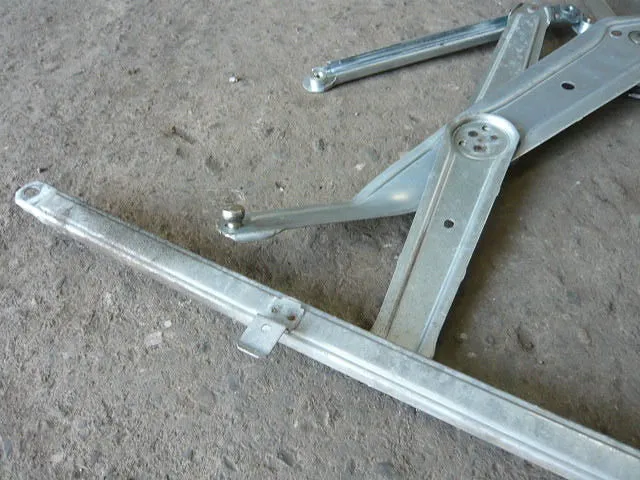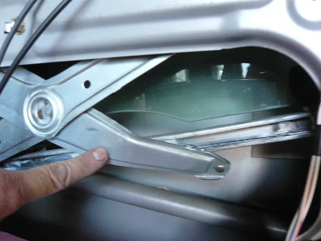 ドアから完全に外したところです。ガラスに付くレールから外れてしまっています(汗) 先端の丸い部分の先はレールの中のプラスチックにはめ込まれているのですが、外れて曲がってしまっていますね^^;;;