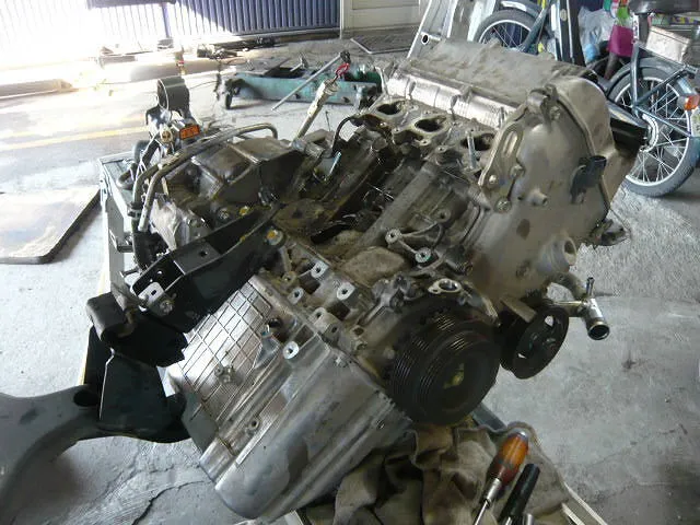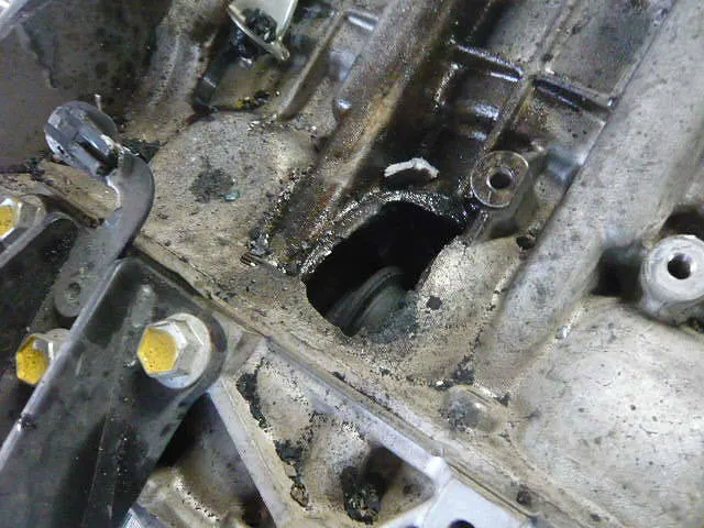 高速道路でエンジンストップ!!のエブリィバン入庫です^^;; 写真でわかるようにエンジンに穴が!!エンジンオイル不足(3万キロ無交換)の為にエンジン内部のコンロッドが折れて内側から破壊(泣)怖いですね~ こうなってしまうとエンジン載せ替えしかありません(汗) やはり日頃のメンテナンス(特にエンジンオイル!)大切ですね!! 今回はエンジン載せ替え(リビルト)、ワイヤー類交換(溶けてました^^;;;)等々400000円程の作業でした!