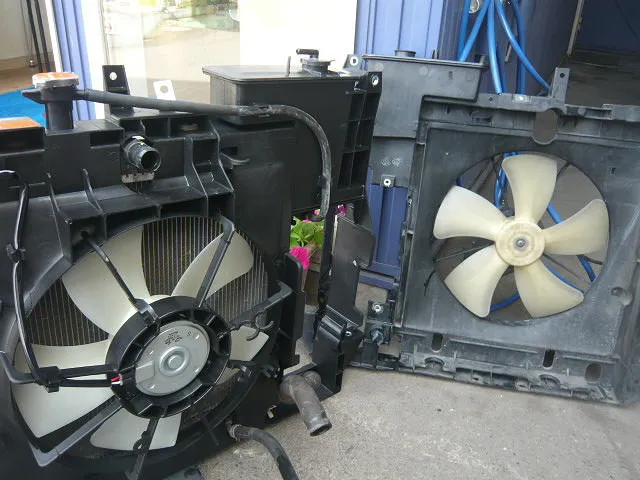 オーバーヒート気味のダイハツアトレー。走行中は大丈夫なのですが、停車中にオーバーヒート気味に^^;; 冷却水逆流も確認!! すぐに現象確認しました、電動ファンが回っていません(泣)新しく来たものはファンモーターが大きくなっていました^^;;