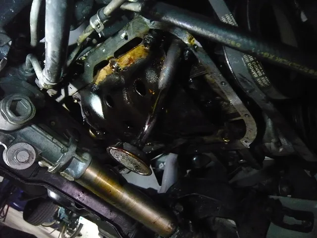 富士見市、N様。ご入庫ありがとうございます!オイル漏れが有る!!という事で確認したところ、オイルパン取り付け部よりの漏れでした。オイルパンはずし・清掃・シールパッキン塗りまして~取り付けにて完了です^^