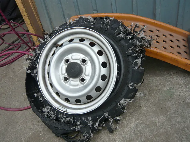 バースト!!!です。高速でのバーストですが、Rタイヤだったので事なきを得ました。溝はありますが、全体的にヒビが入っていて、そこから破裂したようですね(汗) 大事です!タイヤの状態!皆様も注意しましょう^^