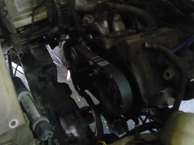 オイルが漏れている!!ということで、入庫されました。他社様でタイミングベルトの交換は行なっていますが、オイルシール(漏れ原因)、ウォーターポンプの交換はされていません(泣) 同じ作業となってしまいますが、お客様に納得していただきましたので、しっかりと整備させていただきます^^