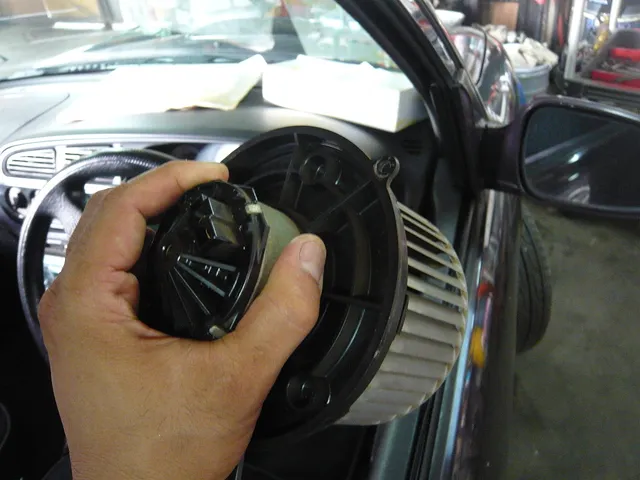エアコンの風がたまに出なくなる!という事で入庫のミラジーノです。当社に来た時は完全に風が出ていませんでした(泣) 一番簡単な事からのチェックということで、ブロアモーターをはずして単体点検・・・動きません(汗) しかもかなりの熱をもっています。ファン単体の不具合でした。新品と交換して無事納車となりました^^