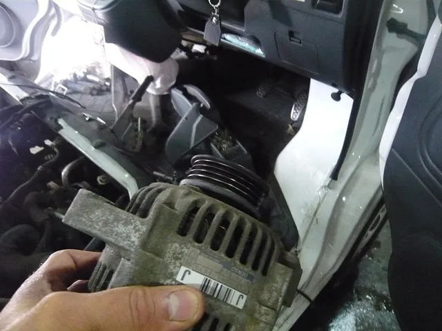 バッテリーの赤いランプが付いた~ということで入庫のハイゼットです。テスターで確認したところ、充電不良でした。写真のオルタネータを交換(リビルトです)し無事納車となりました^^