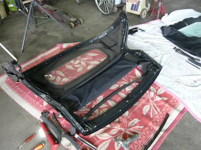 平成15年式マツダロードスター・・幌がサンルーフ状態になってしまいました(泣) 交換しかないですね^^; ちなみに新品幌約96000円(驚) 交換工賃約70000円(驚驚)です^^; もちろんそんなに頂けませんよ^^;;