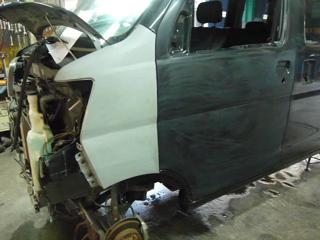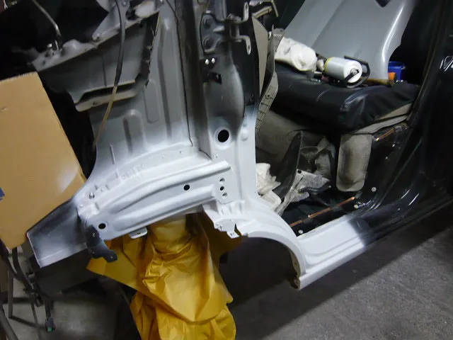 白っぽく写っているのが、交換して部分です。パネル交換→継ぎ目をパテ埋め→サフェーサー塗り塗り・・という感じです^^